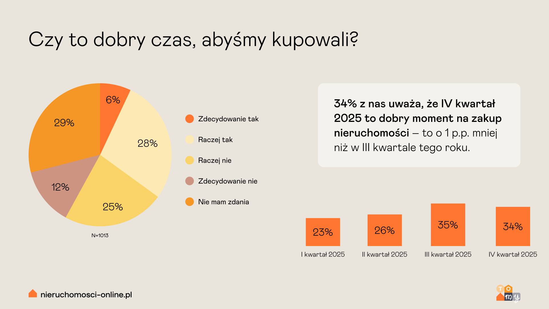 Badanie „To my. Polacy o nieruchomościach – IV kwartał 2025” zostało zrealizowane w drugiej połowie listopada przez agencję Inquiry na zlecenie Nieruchomosci-online.pl na reprezentatywnej grupie 1013 dorosłych Polaków.