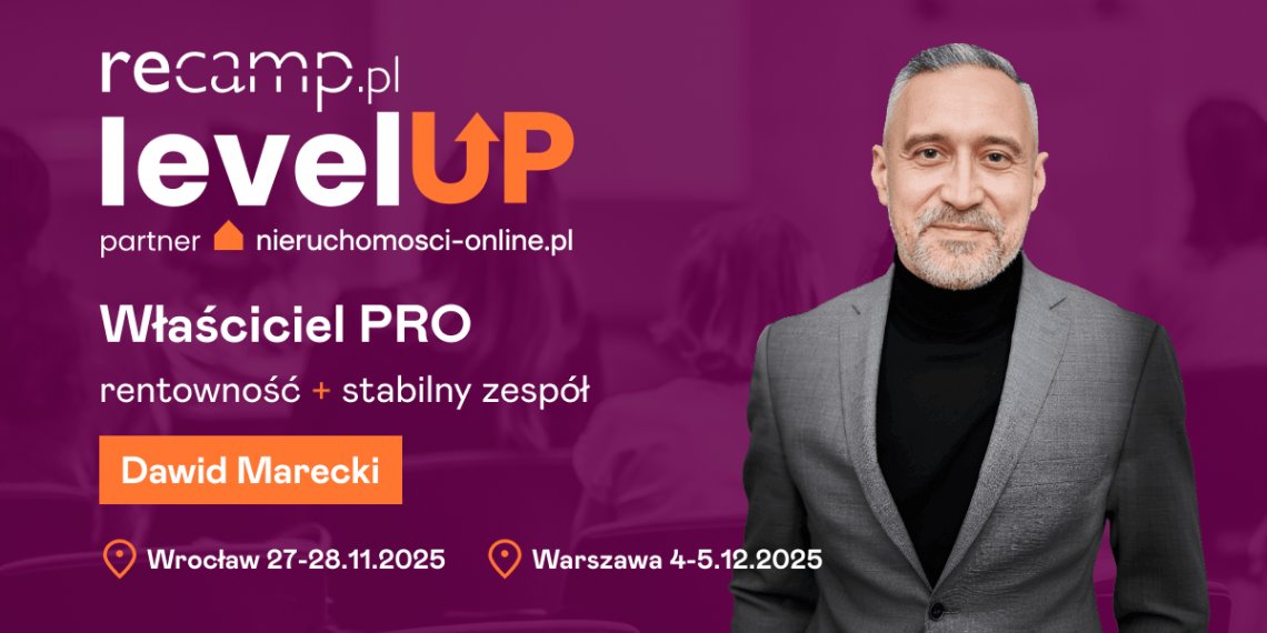 Trener: Dawid Marecki – od ponad 15 lat szkoli właścicieli i menedżerów największych biur nieruchomości w Polsce. Wspiera liderów rynku w budowaniu rentowności biznesu i stabilnych zespołów.