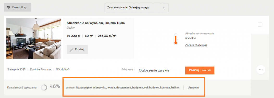 Jeśli zauważysz braki lub nieścisłości, jak najszybciej uzupełnij je poprzez formularz edycji ogłoszenia.