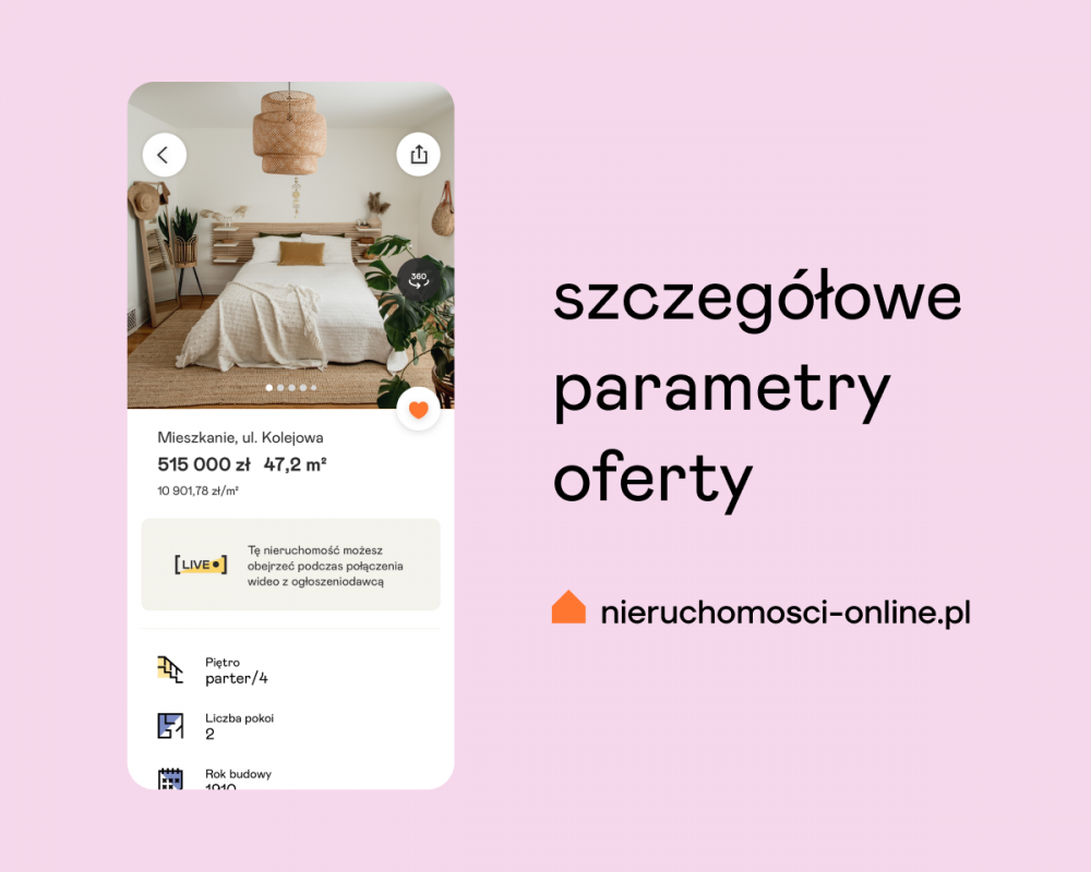 Codziennie w aplikacji do wyboru kilkaset tysięcy aktualnych ogłoszeń z rynku wtórnego i pierwotnego z portalu Nieruchomosci-online.pl. Mieszkania, domy, działki, grunty, biura, lokale handlowe i użytkowe. Na sprzedaż i na wynajem. Znajdziesz tam również nowe mieszkania i domy z inwestycji deweloperskich na terenie całej Polski.