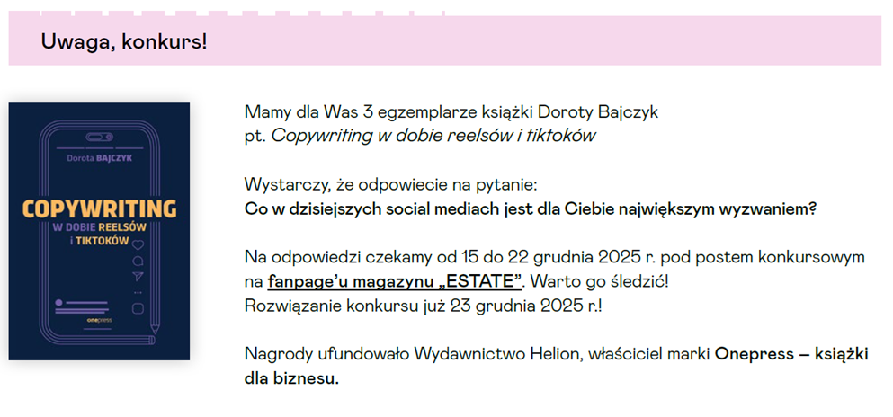 Książka to podręcznik zrealizowany w duchu, który opisuje: zwięzły, lekki, dynamiczny. Nie znajdziemy tu akademickiego tonu – są za to konkretne przykłady, ćwiczenia, case studies, wypowiedzi ekspertów i język, który nie udaje, że internet to świątynia literatury. Dla marketerów i twórców treści to kopalnia inspiracji i przykładów, które można zastosować od razu. W tym wszystkim czai się jednak pytanie o sens tworzenia takich treści – czy w pogoni za uwagą nie gubimy treści? Bajczyk nie wchodzi jednak w filozoficzne rozważania – i może dobrze. Momentami jej styl jest aż zbyt dopasowany do realiów, żeby zostawić przestrzeń na refleksję. Ale to w końcu książka o świecie, który nie zatrzymuje się nawet na sekundę – więc i narracja musi biec.
