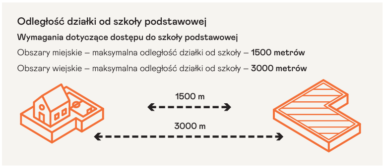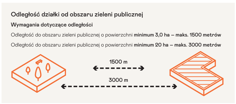 Ustawa o planowaniu i zagospodarowaniu przestrzennym określa maksymalne odległości od szkoły podstawowej i od obszarów zieleni publicznej, jakie będzie musiała spełniać działka wchodząca w skład terenu inwestycji.