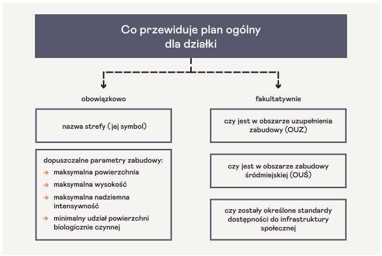 Zarówno z projektu planu ogólnego, jak i z planu ogólnego dowiesz się, jakie są jego ustalenia dla twojej działki.