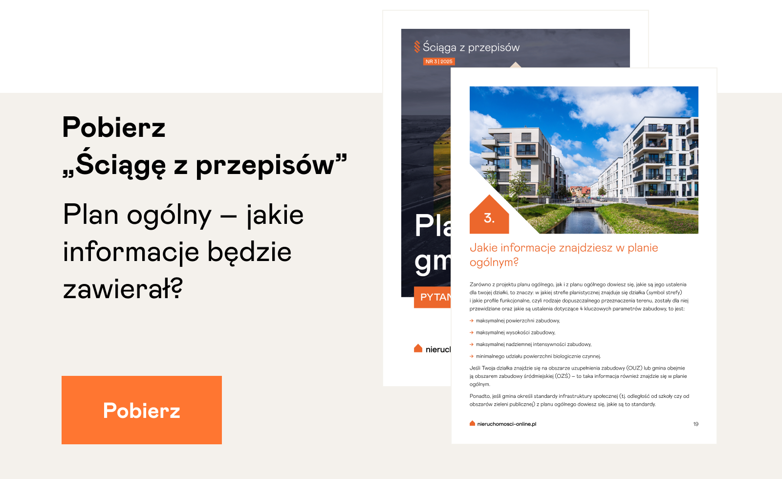 Ponadto, jeśli gmina określi standardy infrastruktury społecznej (tj. odległość od szkoły czy od obszarów zieleni publicznej) z planu ogólnego dowiesz się, jakie są to standardy.