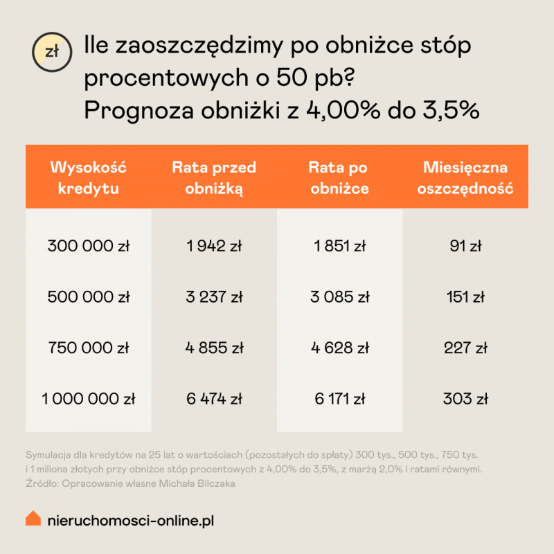 Jak wyglądałyby raty, gdyby stopy spadły o 0,50 punktu procentowego?