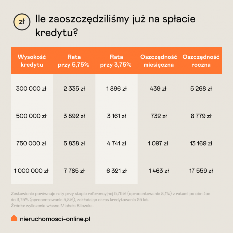 Przy kredycie na milion złotych różnica między szczytem a obecnym poziomem to prawie 1500 zł miesięcznie, czyli 17,5 tys. zł rocznie.