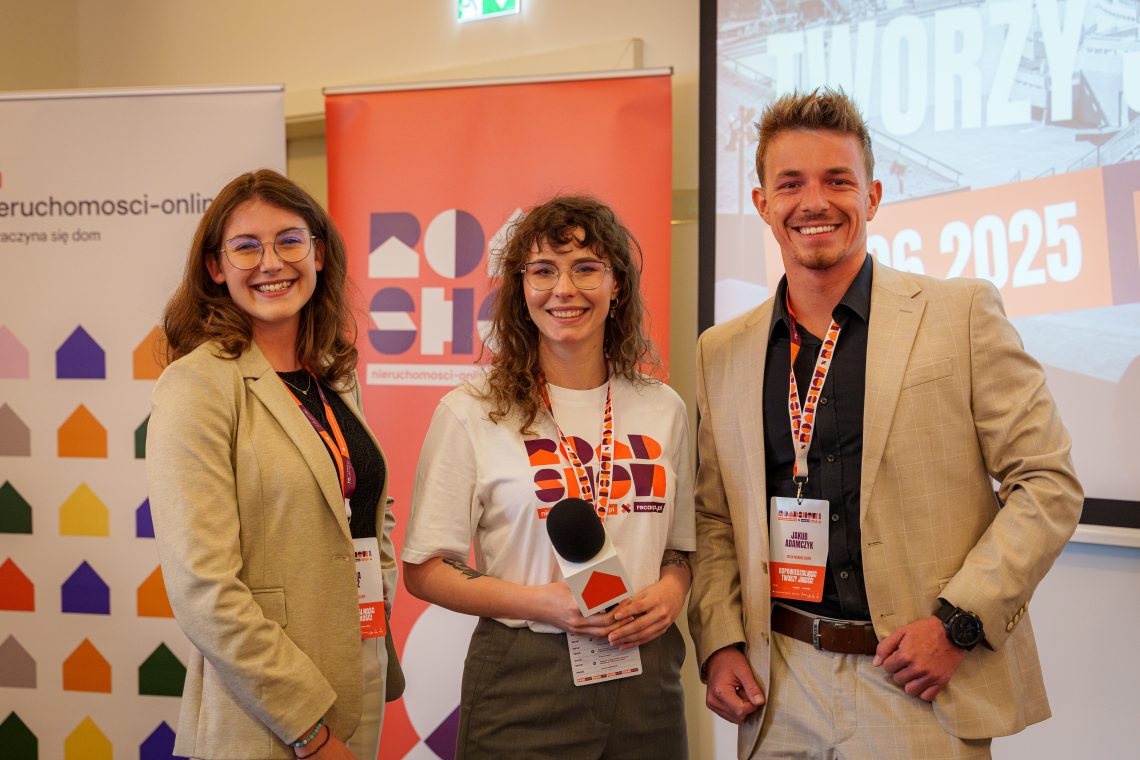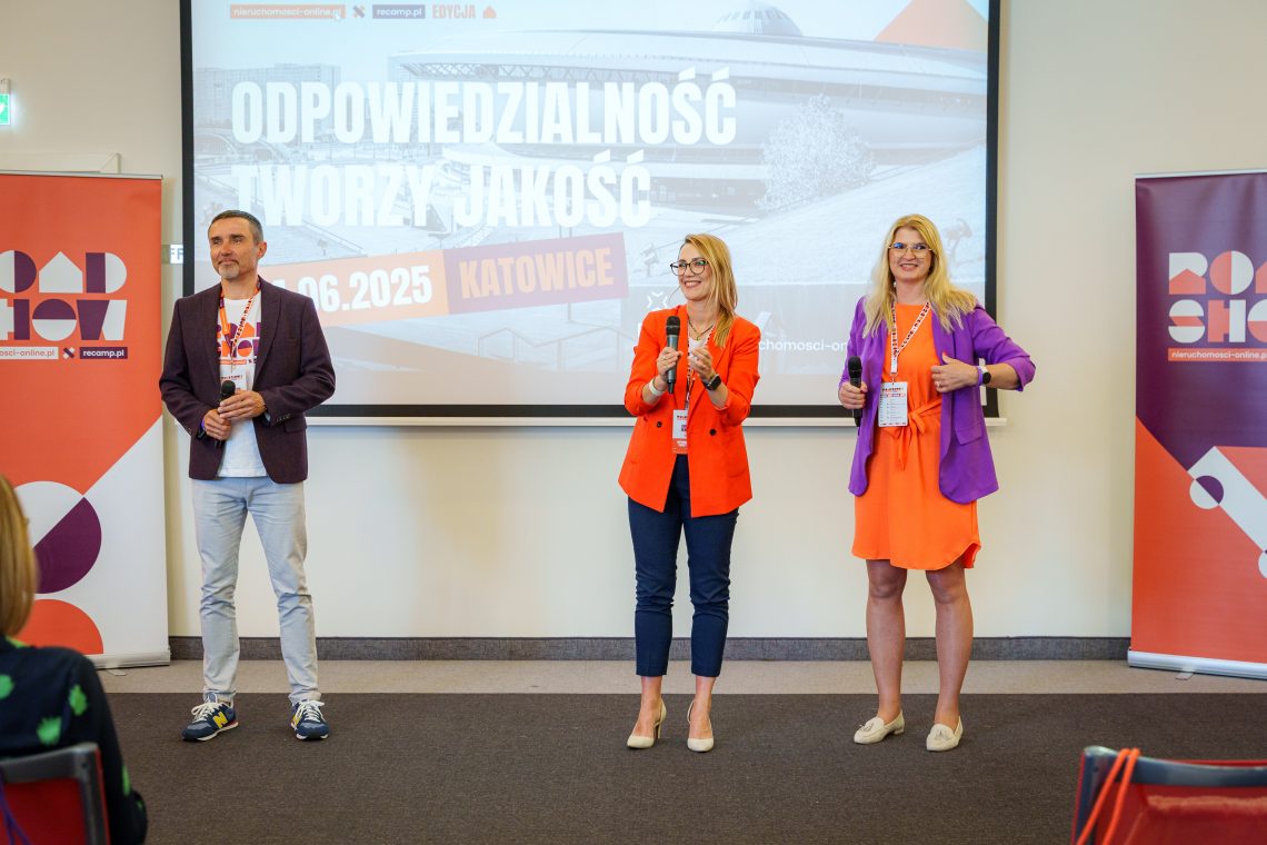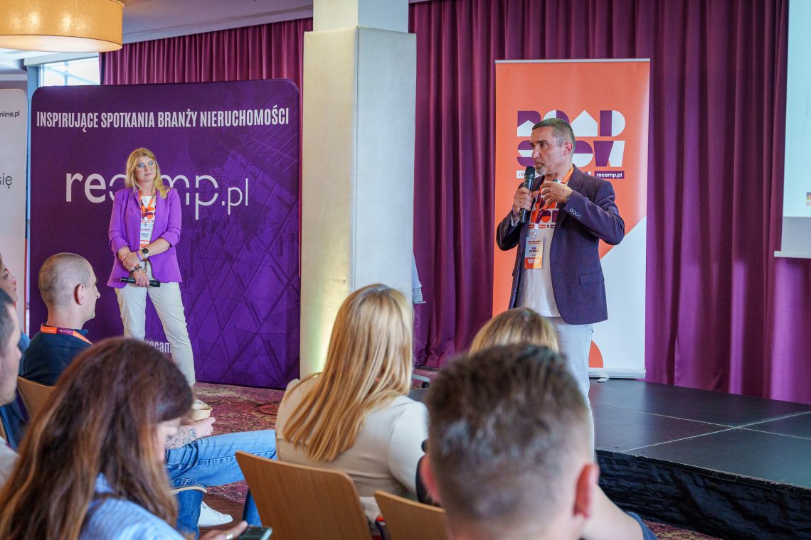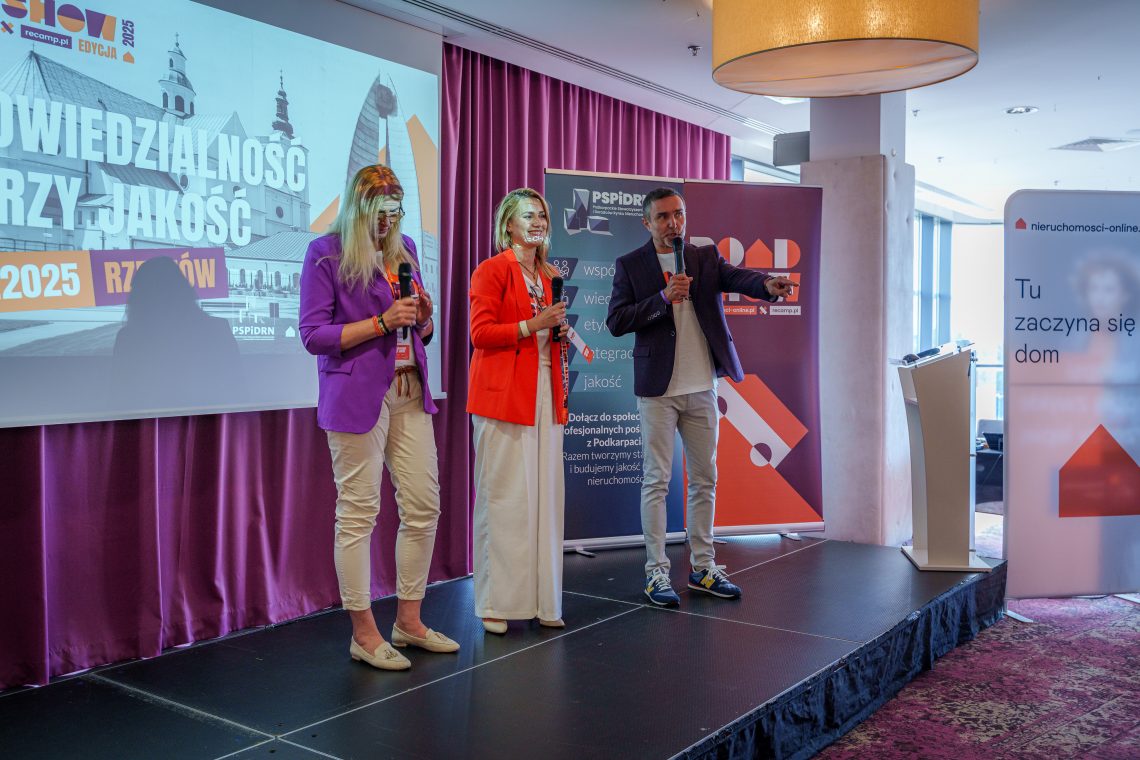 Wraz z Dominiką Mikulską na scenie stanęli Agnieszka Szałęga i Rafał Szelenbaum, tworzący wspólnie platformę szkoleniową Recamp.pl, organizatorzy największej i najstarszej konferencji dla branży nieruchomości, a na co dzień aktywni pośrednicy, managerowie firm i działacze na rzecz współpracy w branży. To w głowach tej trójki wyewoluował szalony pomysł, by ruszyć w Polskę i rozpalić ogień dyskusji, wokół tego jak wygląda i jak zmienił się na przestrzeni lat obraz pośrednictwa w obrocie nieruchomościami w kraju. Ale też jak wszyscy możemy na ten obraz odpowiedzialnie i proaktywnie wpływać.