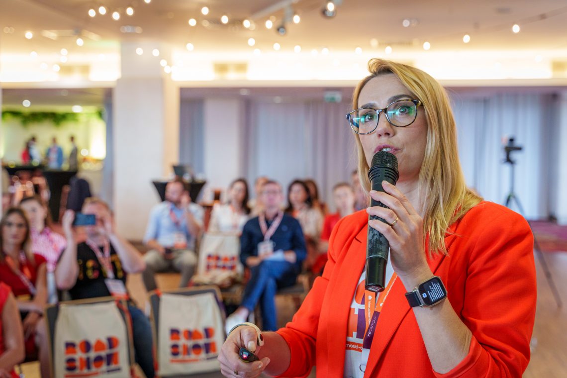 Program ROADSHOW obejmował 3 prelekcje. Jako pierwsza pojawiła się na scenie Dominika Mikulska, b2b marketing manager Nieruchomosci-online.pl.