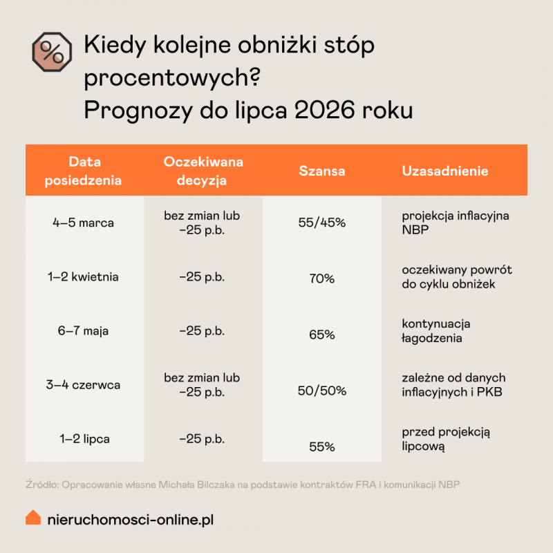 Decyzja była powszechnie oczekiwana. RPP nie dysponowała jeszcze styczniowymi danymi o inflacji, a komunikacja ze strony NBP konsekwentnie sygnalizowała tryb obserwacji. Dla rynku nieruchomości i kredytów hipotecznych oznacza to kontynuację stabilnych warunków – ale z coraz wyraźniejszą perspektywą wznowienia cięć wiosną.