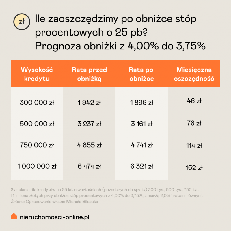 Scenariusz 1: Obniżka o 25 p.b. (stopa referencyjna 3,75%)