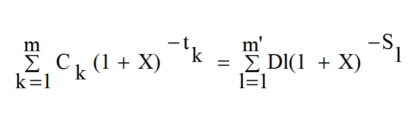 - tk – okres, wyrażony w latach lub ułamkach lat, między dniem pierwszej wypłaty a dniem każdej kolejnej wypłaty,