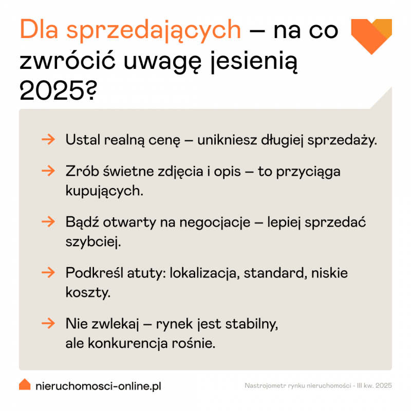 Z najnowszego badania nastrojów rynkowych po III kwartale 2025 roku wynika, że na rynku nieruchomości panują spokój i przewidywalność. Pośrednicy z całej Polski mówią o sytuacji, w której kupujący wracają do poszukiwań, ale działają ostrożnie, dokładnie porównując oferty i negocjując warunki. Sprzedający z kolei coraz częściej dostosowują ceny do realiów – rynek staje się miejscem negocjacji i racjonalnych rozmów, a nie emocji.
