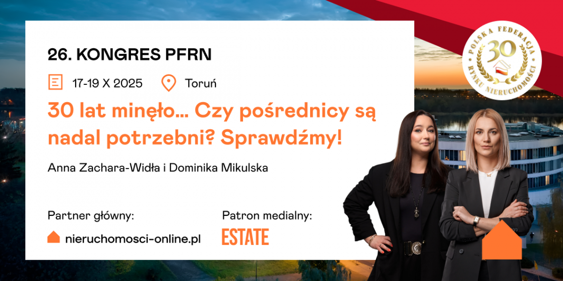 W dniach 17-19 października 2025 r. w Toruniu odbędzie się 26. Kongres Polskiej Federacji Rynku Nieruchomości. W tym roku przypada dodatkowa okazja do świętowania tj. obchody 30-lecia Polskiej Federacji Rynku Nieruchomości!