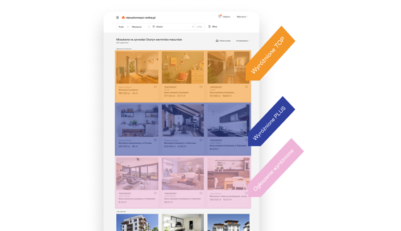 3 rodzaje wyróżnień w Nieruchomosci-online.pl