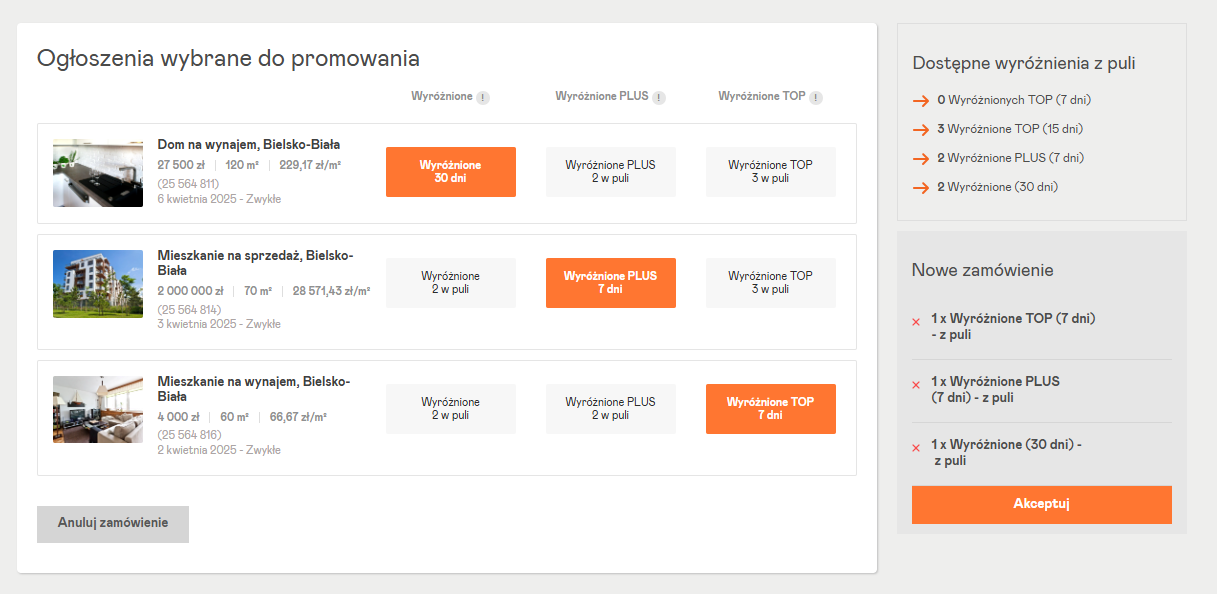 Możesz uruchomić wyróżnienia dla kilku ogłoszeń jednocześnie. Sprawdź jak → Widok wyróżniania wielu ogłoszeń